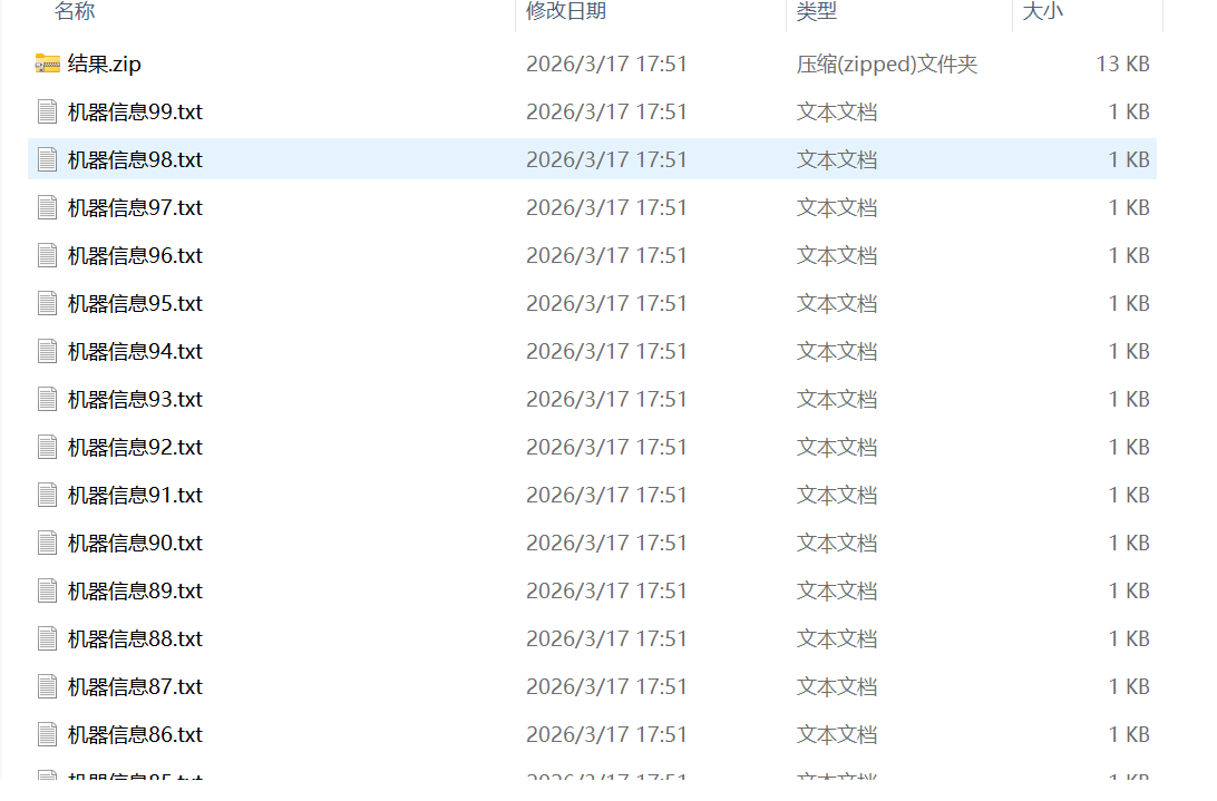1. 在“D:\鲸闲办公\agent版本\案例\DT-Bot工作流\文件助手”创建100个txt文件,文件名为“机器信息”。并且每个txt文件写入内容:“编号89757” 。