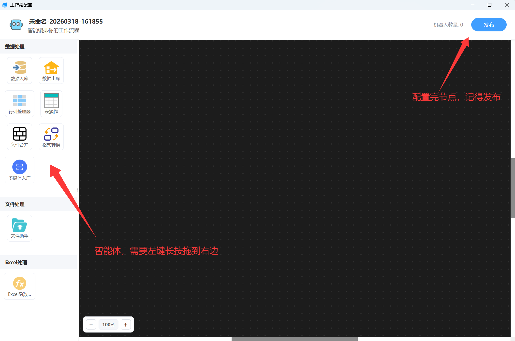 设计完成后,我们可以在左上角为工作流取一个名称 ,然后在右上角点击发布。