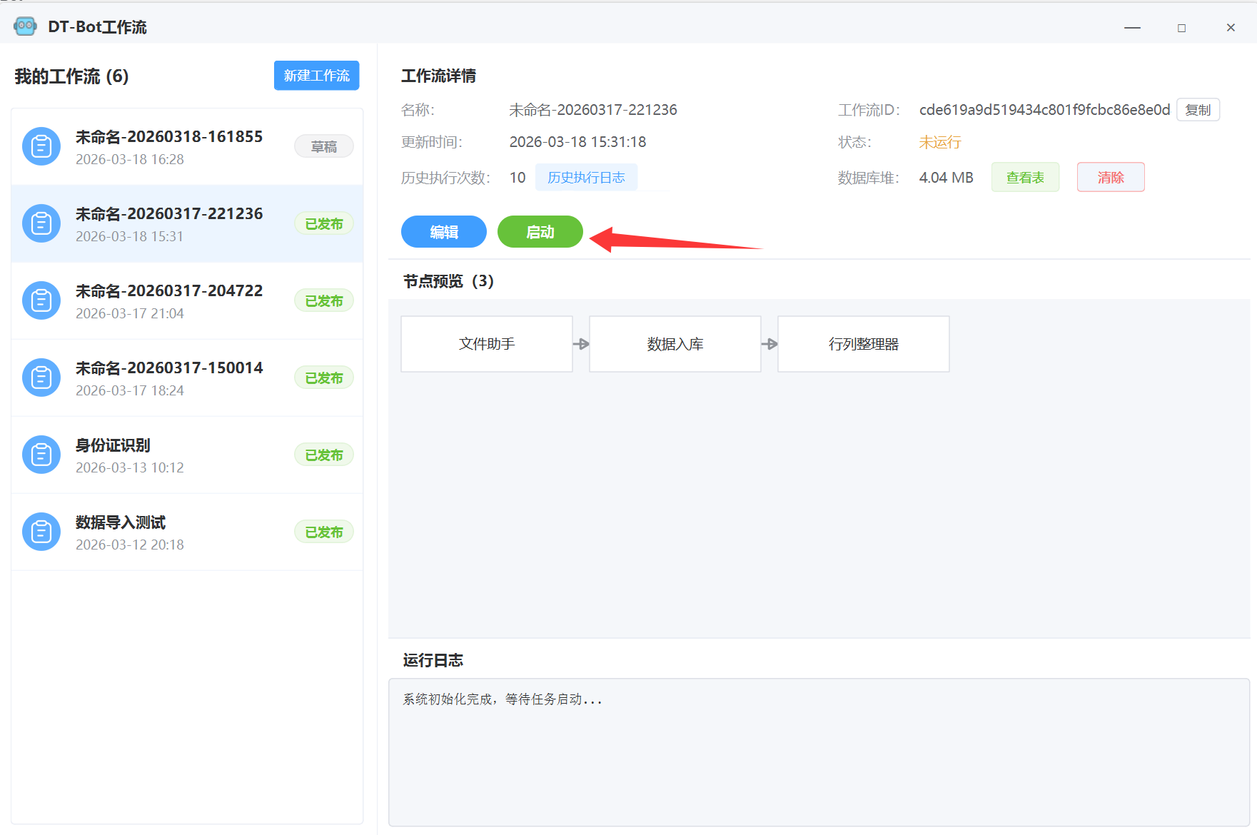 在工作流界面,单击你要启动的工作流,然后在右边点击启动即可。