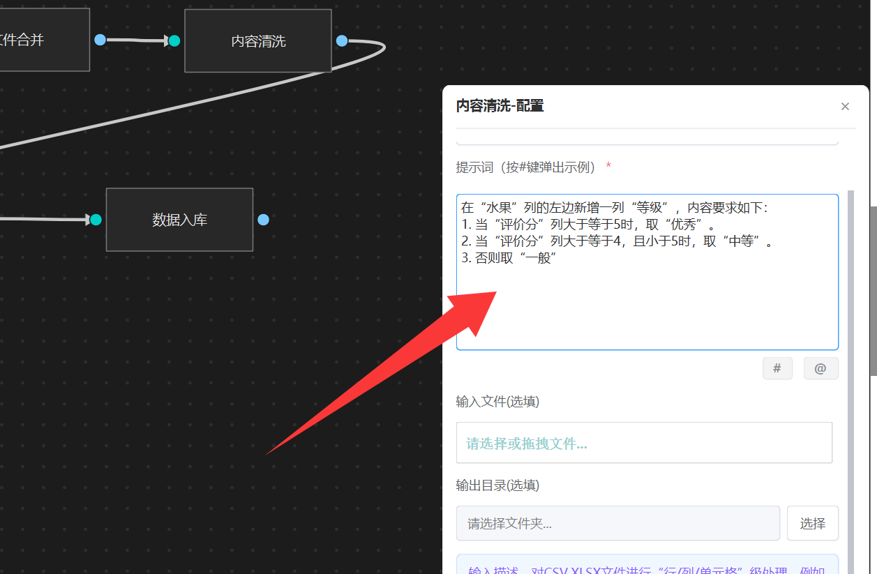 - 提示词: 清洗的提示词描述。