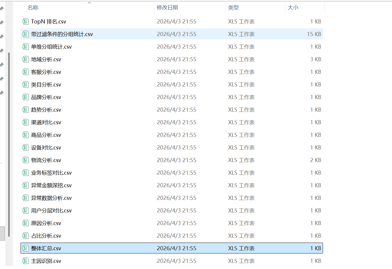 等待执行完成,打开目录,就可以看到所有统计文件,如图: