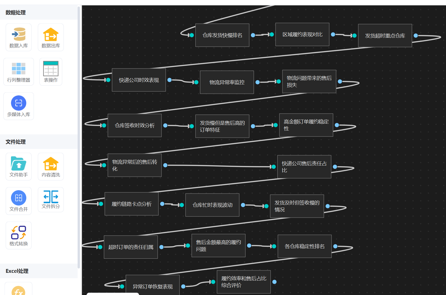 19. 异常订单恢复表现:把出现物流异常但最后还是签收完成的订单单独拿出来,看哪些仓库和快递公司处理恢复能力更强。
