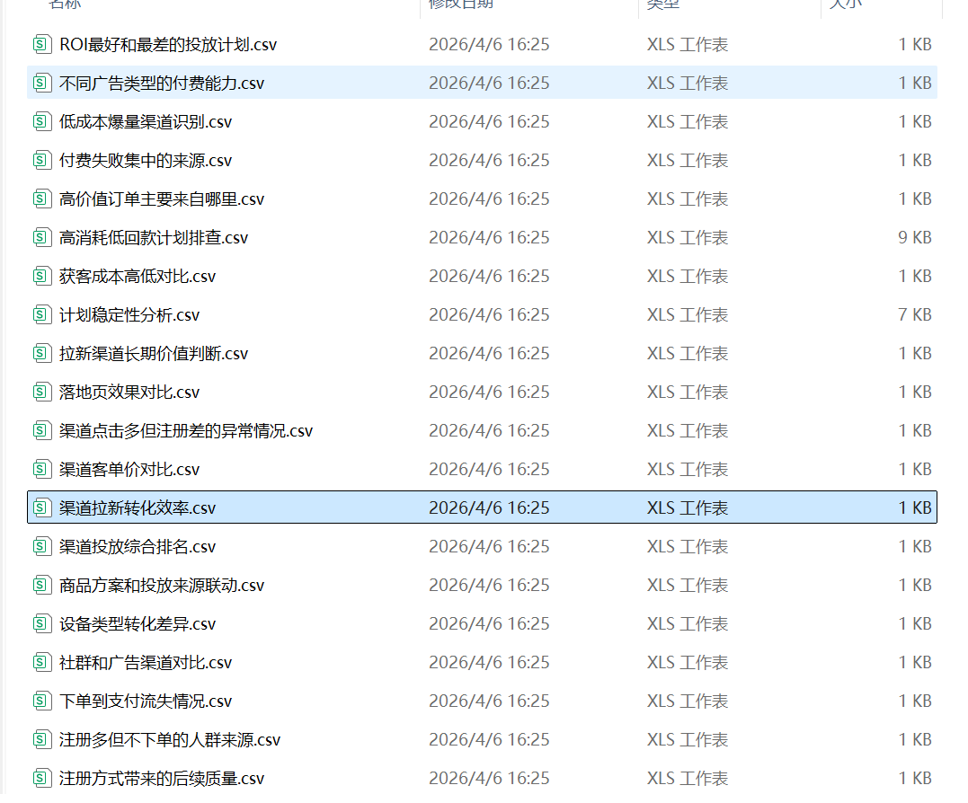 10. 低成本爆量渠道识别:把花钱不算多、但点击、注册和下单都能跑起来的渠道挑出来,看哪些渠道最适合继续放量。