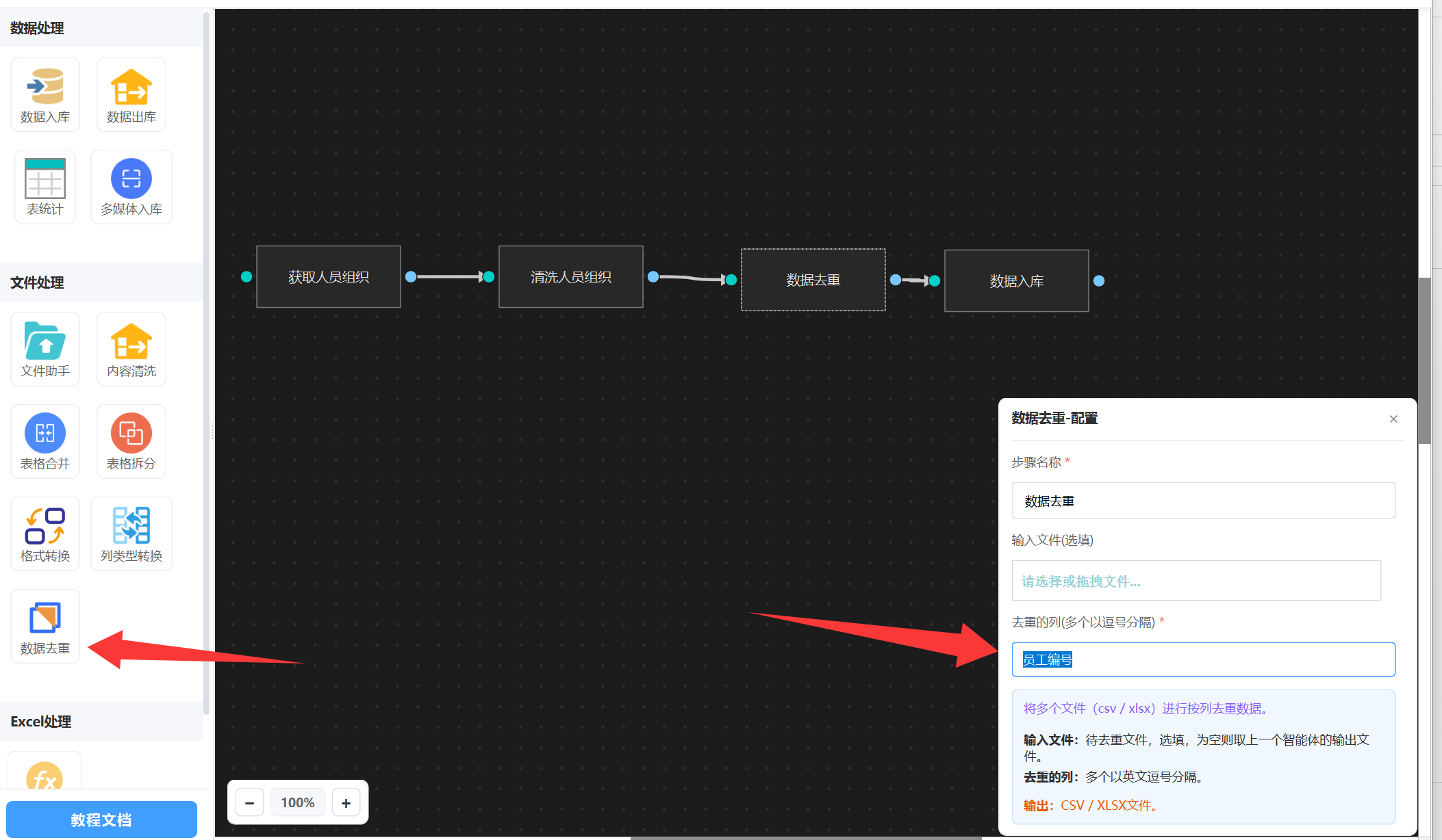 挂一个”数据去重“,如图: